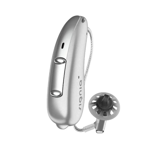 The Signia Silk Charge&Go IX is a tiny, ready-to-wear hearing aid that fits comfortably right out of the box with soft silicone sleeves. It offers clear, natural sound, reduces background noise, and connects easily to your smartphone for streaming calls and music.